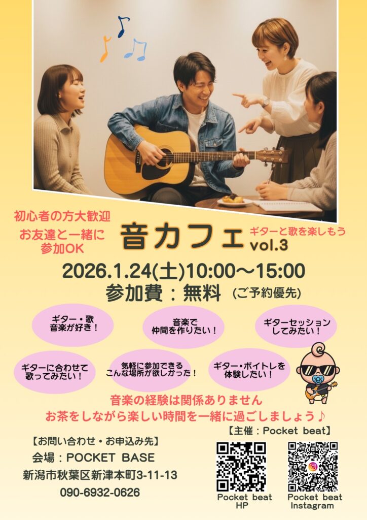 こんにちは、Pocket beatです! みんなでまったり楽しむ「音カフェ」、第3弾の開催が決定しました〜!🥳